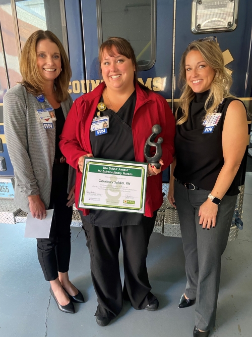 Pictured from Left: Julie Hawkins, MSN, RN, NEA-BC, Vice President, CNO, Courtney Spidel, R.N., Rebecca Bradley, MSN, RN, Director Emergency Services